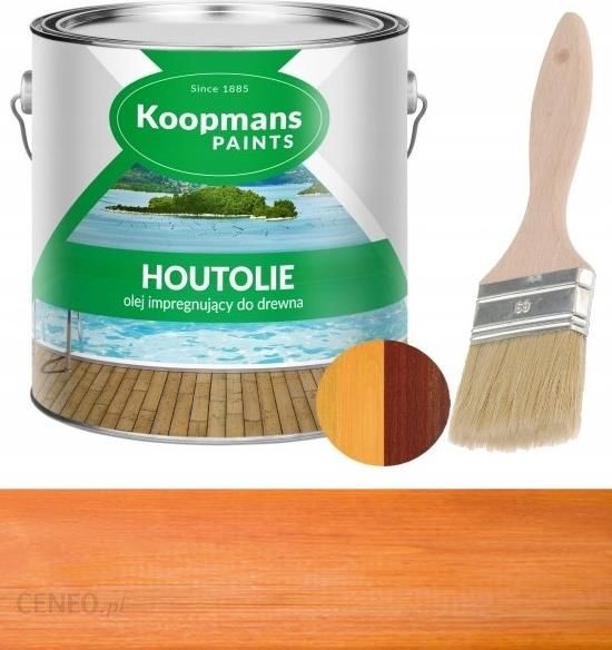 Houtolie Koopmans Olej Impregnujący Do Drewna 2,5L Kolor 109 MIÓD MANUKAJedyny swoim rodzaju olej impregnujący do drewna na bazie oleju Inianego.Kolor: 109 MIÓD MANUKAOlej Koopmans – kompleksowa pielęgnacja drewnaOlejowanie powierzchni drewnianych sprawia, że drewno niezależnie od gatunku staje się odporniejsze na korozję chemiczną i biologiczną. Oleje Koopmans to produkty stworzone na bazie naturalnego oleju lnianego. Za sprawą tego składnika preparat doskonale eksponuje naturalną strukturę surowca. Koopmans olej do drewna charakteryzuje się łatwą aplikacją, dzięki czemu jest w stanie skutecznie impregnować i zabezpieczać drewno.Oprócz intensywnej ochrony i głębokiej impregnacji, oleje Koopmans mają wiele zastosowań. Z powodzeniem można ich użyć do pokrycia desek tarasowych, architektury ogrodowej, mebli ogrodowych czy drewnianych elementów fasadowych. Olej Koopmans przy nakładaniu dokładnie pokrywa podłoże w zależności od chłonności jedną lub co najwyżej dwiema warstwami. Warstwę należy pozostawić do całkowitego wyschnięcia na 24 godziny. Podczas czyszczenia wystarczy użyć wody z dodatkiem delikatnego detergentu przeznaczonego do mycia powierzchni drewnianych.Koopmans – marka godna zaufaniaKoopmans olej do drewna gwarantuje regulację jego wilgotności i umożliwia swobodne oddychanie desek. Pozwala na uzyskanie gładkiej, wręcz jedwabistej w dotyku powierzchni. Koopmans olej chroni drewno przed warunkami zewnętrznymi, tj. promieniowaniem słonecznym, wilgocią i opadami atmosferycznymi. W przypadku renowacji przy użyciu produktów marki Koopmans nie jest wymagane wcześniejsze szlifowanie ani usuwanie starych warstw.Obszary stosowania:deski tarasowedomki drewnianealtanypergolepłotymeble ogrodoweWłaściwości:głęboko wnika w drewnoodporny na czynniki atmosferycznepodkreśla naturalność drewnawieloletnia ochronaprzyjazna środowiskułatwa aplikacjaZużycie:1litr wystarcza na około 10-15m2 w jednej warstwieDla ułatwienia wyboru koloru – rzeczywiste zdjęcia wzornikówJako GRATIS dołączamy oryginalny PĘDZEL od Polskiego producenta, aby zakupy u nas były jeszcze przyjemniejsze!DO ZAKUPU INNYCH KOLORÓW ZAPRASZAMY NA NASZE POZOSTAŁE AUKCJE 🙂